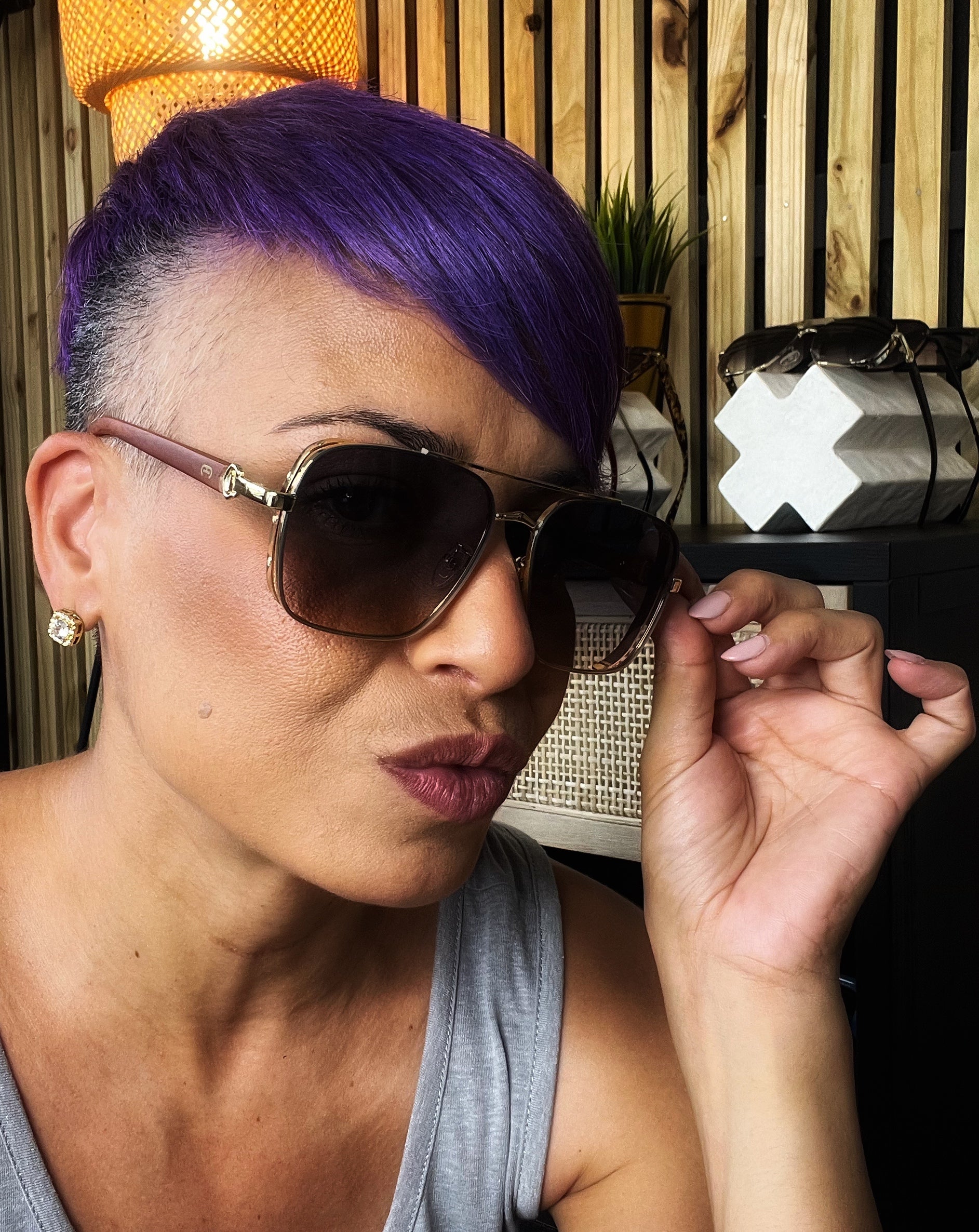 Un clásico con un giro moderno. Estas gafas de sol cuadradas destacan por su montura dorada y lentes oscuras que aportan un toque de misterio y sofisticación. Las patas en color marrón con acabado madera le dan un estilo distintivo y atemporal, perfecto para quienes buscan elegancia con un toque natural.