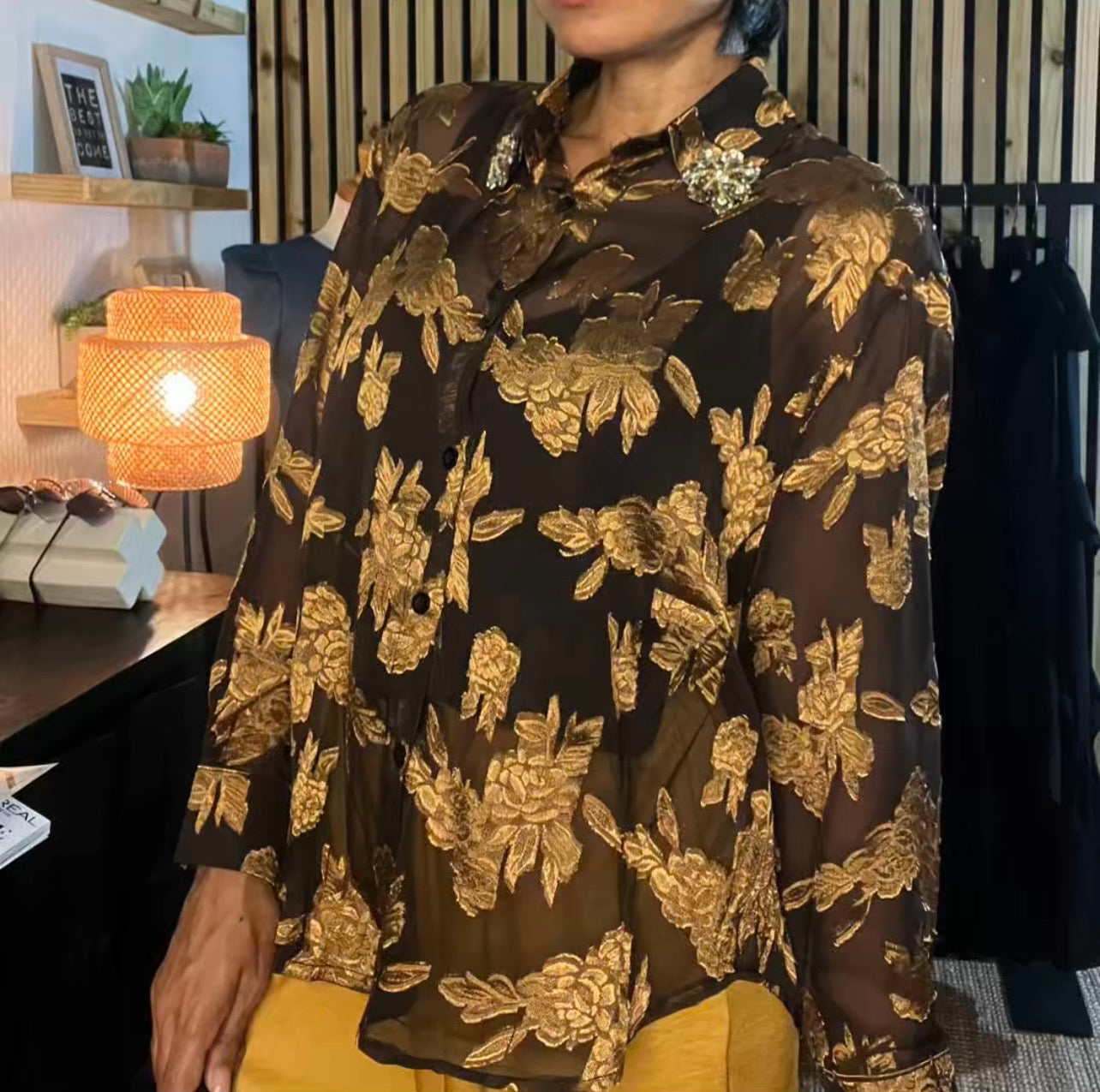 Top en mesh dorado con brillo sutil.Ligero, elegante y pensado para elevar cualquier look.